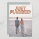 Cette annonce de mariage personnalisée présente un design de photo personnalisé amusant et romantique. La phrase "Just Married" est imprimée en haut en ballons en feuille rose or. Une photo d'exemple d'une mariée et d'un marié couvre le fond que vous pouvez personnaliser pour inclure votre propre photo personnalisée du couple marié, ou une autre image de votre choix. Un exemple d'annonce de mariage du couple de jeunes mariés est imprimé au dos.
