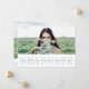 Le faire-part photo moderne de graduation présente votre photo préférée orientée paysage ou horizontale à l'avant, avec "gradué" affiché sous l'élégant bleu aqua clair. Personnalisez avec votre nom, l'école et l'année de diplôme sur une simple couverture blanche rayée. Les cartes sont retournées à une photo supplémentaire avec une bande le long du fond pour personnaliser avec les plans du diplômé pour le collège ou la carrière. Un choix élégant et moderne pour la classe de 2022 diplômés.