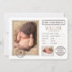 Fêtez l'arrivée de votre petit avec notre Faire-part bébé d'arrivée de première classe! Cette carte élégante et personnalisée comprend une adorable photo de bébé, ainsi que tous les détails de la naissance de votre bébé, y compris le nom, la date, l'heure, le poids et la longueur. Conçu dans des tons doux et neutres, ce faire-part est parfait pour n'importe quel thème ou style de nurserie. Avec une touche de charme inspirée du voyage, c’est la façon parfaite de partager votre joie et d’accueillir votre lot de joie dans le monde. Idéal pour les nouveaux parents à la recherche d'un faire-part intemporel et réconfortant !