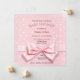 Ces faire-part de baby shower carrés rose à pois adorables présentent un joli noeud rose et une combinaison de polices de caractères calligraphiées, serif et sans serif. Le verso présente des pois roses et blancs. Pour personnaliser, cliquez simplement sur 'personnaliser ce design' et entrez vos informations. Zazzle fera le reste. Cette invitation charmante fait partie de la suite de faire-part de baby shower Polka Dots, Rubans et Noeud