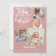 Une élégante carte de faire-part de naissance de vacances de collage de 4 photos pour vous de personnaliser avec vos photos spéciales encadrées en or, message de vacances, noms, et statistiques de naissance. L'envers est en train de tomber des flocons de neige. Vous pouvez customiser la couleur arrière - plan pour correspondre à votre thème de vacances. Conçu par Thisisnotme©