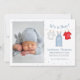 Ce design est composé d'un bleu bébé simple mignon, d'un modèle photo fantaisiste, d'une typographie simple et tendance, d'un texte statistique sur les statistiques de naissance, d'un adorable et sucré, d'un jean bleu denim, d'un t-shirt bébé rouge blanc, d'un design minimaliste simple, d'un faire-part bébé adorable, pour les nouveaux cartes photos