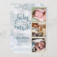 Une carte de faire-part de naissance de vacances 3 collage photo élégant pour vous de personnaliser avec vos 3 photos spéciales dans des cadres en or, message de vacances, noms, et statistiques de naissance. L'envers est en train de tomber des flocons de neige. Conçu par Thisisnotme©