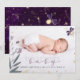 Partagez la joie de votre nouveau-né avec cette annonce de naissance enchanteresse ! Avec une photo de bébé précieuse, des papillons délicats et des accents dorés scintillants sur un fond violet foncé, c'est une belle façon de présenter votre petit bout.