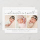 Une simple carte de faire-part de naissance moderne pour partager la bonne nouvelle de l'arrivée de votre bébé. Le design comprend un collage photo de 3 de vos photos préférées avec bienvenue dans notre monde en écriture manuscrite. Personnalisez avec le nom du bébé, la date de naissance, les statistiques de naissance et le nom des parents. Un enfant ou un bébé ne sera pas touché par le sexe.