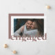 Partagez les nouvelles de votre fiançailles avec ces élégantes cartes faire-part avec une photo horizontale ou orientée paysage avec "engagé" superposé le long du fond. Personnalisez avec vos noms et des détails supplémentaires qui courent verticalement le long des côtés de votre photo pour un look propre et moderne.
