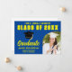 Ce moderne bleu et jaune coutume invité pour la fête de fin d'études supérieures et des faire-part de troisième cycle comprend la typographie classique de votre nom de collège pour la classe de 2025 et des lettres variées. Customisez avec votre année de graduation sous l'écriture chic manuscrite et le casquette noir grad pour de superbes cartes postales. Ajoutez les détails de votre fête à l'arrière.