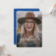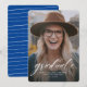 Un script classique simple "gradué" en blanc accentue une seule photo verticale de votre grade. Ce faire-part d'obtention de diplômes fonctionne pour les diplômés du collège ou du secondaire et est assez simple pour laisser briller votre photo. C'est un design intemporel et dispose également d'un dossier rayé avec une couleur personnalisable (par défaut, une nuance classique de bleu vif).