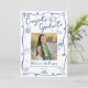 Be proud, rejoice and showcase this milestone of your favorite grad! Send out this quirky, whimsical, simple, modern, personalized 4 photo collage announcement card for an event to remember. Fun, navy blue handwritten script typography and hand drawn graduation icon sketch doodles, along with your custom photo, overlay a white background. On the back, 3 additional photos, white hand drawn doodles and your personalized copy overlay navy blue. Personalize the custom text with your grad’s photo, name, school and class year on the front. Add 3 more photos of your choice, your personal note, next school she’s attending, etc. on the back. Matching invites, thank you cards, cap toppers, napkins, plates and other graduation goodies are also available in this trendy and stylish collection. Guaranteed to add stylish fun to their special occasion!