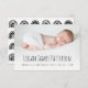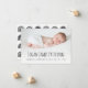 Faire-part de naissance de bouho moderne avec photo horizontale personnalisée. Ajoutez le nom de votre bébé en lettres noires dessinées à la main, ainsi que la date de naissance, l'heure, le poids et la longueur ci-dessous. Un filtre à dégradé allège la partie inférieure de la photo pour aider à faire apparaître le texte. Remplacez facilement l'exemple d'image par votre photo préférée de votre nouveau-né. Sur le dos de la carte se trouve un mignon motif d'arcs-en-ciel blanc et noir dessinés à la main sur un arrière - plan blanc. Idéal pour les garçons et les filles.