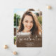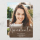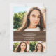 Un pays rustique en bois brun sombre script diplômé avec 4 photos faire-part graduation. Ajoutez votre message à l'arrière.