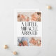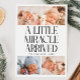 Modern Christmas theme birth announcement card featuring a bold typography text that says "a little miracle arrived" with 4 of your newborn pictures. This is a birth announcement card for the holiday seasons! Add your pictures, birth stats, and a message! The background is white.