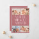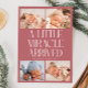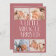 Modern Christmas theme birth announcement card featuring a bold typography text that says "a little miracle arrived" with 4 of your newborn pictures. This is a birth announcement card for the holiday seasons! Add your pictures, birth stats, and a message! The background is pink.