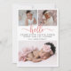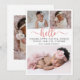 Faire-part de naissance pour bébé fille avec écriture "Hello" rose pastel - Carte à collage de 3 photos. Célébrez l'arrivée de votre adorable bébé fille avec ce faire-part de naissance élégant. La couverture présente un collage moderne de trois photos, magnifiquement mis en valeur par un "Hello" manuscrit élégant en calligraphie swash fluide sur fond blanc. Ajoutez le nom de votre bébé et les détails de naissance pour créer un souvenir intemporel et sincère.