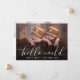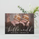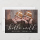 Doublez la joie avec une calligraphie stylée "bonjour monde". De l'autre côté, ajoutez vos deux photos préférées avec les stats de naissance. Carte postale disponible dans ce design. Voir cette collection.