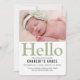 Hello New Baby green Annonces modernes personnalisées de Ricaso - disponibles dans une gamme de styles et de couleurs en magasin - changez le texte et la photo à votre propre
