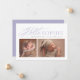 Ce faire-part de naissance à deux photos présente un élégant script lilas "hello" à côté d'un nom ou d'un surnom. Il comprend également de la place pour le nom du bébé et d'autres détails ainsi qu'un carré et une photo horizontale. La couleur violet mauve douce est parfaite pour annoncer une petite fille douce et l'arrière est un violet coordonné sur bande violet. Aussi disponible en d'autres couleurs.