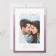Annoncez votre fiançailles dans un style élégant et sobre, avec ces cartes photos chic avec une bordure d'aquarelle trempée dans des tons éthérés de violet pourpre poussiéreux. "We're Engaged" chevauche votre photo verticale ou orientée portrait dans un script de calligraphie aérée, avec vos noms et détails supplémentaires en dessous.