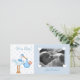 Carte photo avec cigogne bleue et bébé avec arrière - plan à coeur doux. Parfait faire-part de naissance ou carte de remerciements pour la nouvelle petite fille. Les cartes sont faciles à customiser avec votre propre texte et photo pour les annonces de naissance, les cartes de remerciements, etc. Les cartes sont fournies avec des enveloppes.
