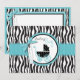 Impression de style boutique zèbre et point avec des accents turquoise et un chariot bébé.