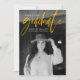 Carte de faire-part moderne de graduation avec la photo préférée de votre diplômé sur le devant avec "Graduate" dans une écriture manuscrite jaune. Personnalisez le devant du faire-part en ajoutant le nom du diplômé, le nom de l'école et l'année de diplôme. La faire-part tendance de graduation inverse pour afficher 3 photos supplémentaires avec de l'espace pour le texte tels que les plans futurs, les détails de graduation, les détails de la fête, etc. Le faire-part de diplôme de 4 photos est parfait pour les diplômés du secondaire et du collège.