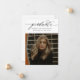 Budget Moderne Calligraphie Deux Photo White Graduation Faire-part offre une typographie minimale et une photo à l'avant, ainsi qu'une deuxième photo à l'arrière et des détails optionnels.