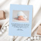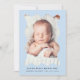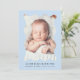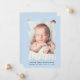 Annoncez l'arrivée de votre bébé avec cette carte de faire-part de naissance moderne et minimaliste, avec la photo verticale de votre bébé présentée dans un cadre ondulé charmant sur un arrière - plan bleu clair. Sous la photo, personnalisez facilement le design avec le nom de votre bébé et les statistiques de naissance dans des polices propres et élégantes. Le dos de la carte comprend une photo horizontale avec espace pour votre message personnalisé — parfait pour partager une note douce avec vos amis et votre famille. Cette faire-part de naissance simple mais élégante allie design contemporain et touche rétro et est idéale pour les annonces pour bébés sans sexe.
