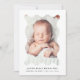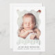 Fêtez l’arrivée de votre bébé avec cette faire-part de naissance moderne et neutre pour les deux sexes ! Le design minimaliste met en valeur la photo verticale de votre petite fille, magnifiquement encadrée dans un cadre ondulé et ludique sur un arrière - plan blanc. Ajoutez ci-dessous le nom et les statistiques de naissance de votre bébé dans des polices design et contemporaines. Le dos est doté d'une photo horizontale avec de l'espace pour votre message personnalisé, ce qui facilite le partage d'une note douce avec les proches. Un design simple mais charmant à l'ambiance rétro subtile !