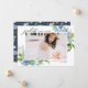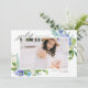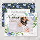 Annoncez votre remise de diplôme avec cette carte de fin d'études photo florale représentant des hortensias bleus aquarelle, des roses ivoire et bleu poussiéreux et une verdure luxuriante. Conçue pour mettre en valeur votre photo préférée de diplômé, ce modèle est le mélange parfait de classique et de moderne. Personnalisez avec votre nom, votre école, votre année de remise de diplôme et un message personnalisé pour partager votre réussite avec votre famille et vos amis. Que vous l'envoyiez par la poste ou que vous le partagiez numériquement, ce design floral rend chaque détail particulièrement spécial.