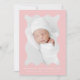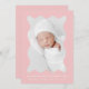 Célébrez l’arrivée de votre petit avec cette élégante carte de faire-part de naissance rose. Le design présente la photo verticale de votre bébé encadrée dans un cadre doux, ondulé, d’inspiration rétro sur un arrière - plan rose vif. Sous la photo, vous pouvez ajouter le nom et les détails de naissance de votre bébé dans une police moderne et propre. Le dos de la carte comprend de l'espace pour une photo horizontale et votre message personnel, créant un souvenir significatif pour la famille et les amis. Ce design simple mais élégant est parfait pour les annonces de naissance de petite fille.