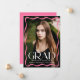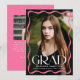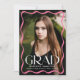 Célébrez votre diplôme d'études secondaires ou collégiales avec cet élégant faire-part de graduation, avec une photo verticale à fond de sang encadrée par une bordure ondulée rose stylisée. "Grad" est affiché en gras blanc en faisant une déclaration, tandis que le nom, l’école et l’année de classe du diplômé ajoutent une touche personnelle. Le dos comprend une photo horizontale avec espace pour un message personnalisé, ce qui en fait la façon parfaite de partager cette étape spéciale avec la famille et les amis.