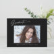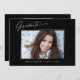 Cartes de faire-part de graduation tendance, moderne et élégant, avec éléments de design du texte moderne avec script d'encre de calligraphie. La photo du diplômé sur le devant de la carte est accentuée d'un dégradé délicat et minimaliste. Le dos de la carte offre des espaces de texte personnalisés pour des informations sur votre diplôme ou peut être effacé si vous souhaitez écrire un message à la main. Noir et blanc ou customiser facilement l'arrière - plan pour correspondre à la couleur primaire de votre école ou à n'importe quelle couleur de votre choix. Idéal pour les étudiants du secondaire, collégial et universitaire.