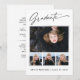Quatre cartes photo, tendance, modernes et élégantes, avec des éléments design de texte moderne avec script d'encre de calligraphie. Les photos des diplômés sur le devant de la carte sont mises en évidence avec une délicate et minimaliste planche à dégradé. Le dos de la carte offre des espaces de texte personnalisés pour des informations sur votre diplôme ou peut être effacé si vous souhaitez écrire un message à la main. Noir et blanc ou customiser facilement l'arrière - plan pour correspondre à la couleur primaire de votre école ou à n'importe quelle couleur de votre choix. Parfait pour les étudiants de niveau secondaire, collégial et universitaire.