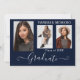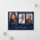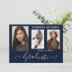 Belle, 3 photos, cartes faire-part de graduation avec script de calligraphie moderne en blanc sur bleu marine. Pour voir d'autres articles comme celui-ci, visitez mon magasin ici à "www.Zazzle.com/LakeViewCardCo". Merci