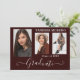 Belle, 3 photos, cartes faire-part de graduation avec script de calligraphie moderne en blanc sur bordeaux. Pour voir d'autres articles comme celui-ci, visitez mon magasin ici à "www.Zazzle.com/LakeViewCardCo". Merci