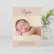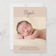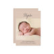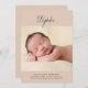 Ce faire-part de naissance photo minimaliste comprend une grande photo, une typographie de script simple et une palette de couleurs pastel en terre cuite. Le devant de la faire-part de naissance comprend le prénom du nouveau-né en écriture manuscrite. Une grande photo est placée sous le nom. Au bas de la faire-part de naissance, ajoutez le nom complet du bébé, la date de naissance, les statistiques de naissance et vos noms. Le texte est écrit en gris fusain foncé contre un arrière - plan en terre cuite douce. Vous pouvez ajouter des photos supplémentaires au verso de la carte si vous le souhaitez.