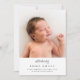 Annoncez votre lot de joie avec style ! Ce design de faire-part de naissance simple mais élégant comprend une photo verticale, un script de calligraphie moderne, une typographie noire classique et un arrière - plan blanc frais. L'arrière est une bande blanche et bronzée neutre pour le genre qui peut facilement être enlevée ou customisée. Vous pouvez customiser ce design en changeant les couleurs et/ou en ajoutant une autre photo à l'arrière. Toutes les couleurs arrière - plans et les couleurs de texte (même le script) sont entièrement personnalisables. Modifiez simplement le modèle avec vos coordonnées (nom de votre bébé, état de naissance et nom). Simple, chic et moderne !