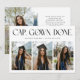 Modern and minimal graduation announcement photo card featuring 3 photos on the front and 1 on the back. The text at the top says "CAP. GOWN. DONE." Add the graduate's name, information, and message to personalize this card.