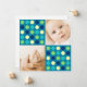 Mettez en valeur deux photos de votre bébé chéri dans cette mise en page à pois et carrés. De plus, ajoutez tous les détails personnels de votre bébé au dos pour que vos amis et votre famille puissent les voir !