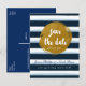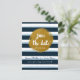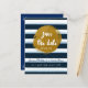 Carte postale à conserver pour la date bleue rayée et or métallisé. Articles assortis disponibles.