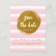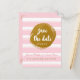 Carte postale à conserver pour la date rose rayée et or métallisé. Articles assortis disponibles.