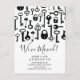 Cartes postales d'annonce de déménagement clés squelette vintage noir et blanc.