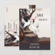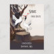Carte postale pour annoncer une date avec un dessin de grues japonaises en bordure d'une forêt. Les grues japonaises sont un symbole de longévité, de bonheur et de fidélité et sont donc parfaites pour un mariage !