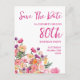 carte postale d'anniversaire 80 ans florale moderne Save The Date.
