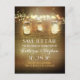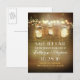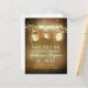 carte postale d'annonce de date de mariage avec fond en bois rustique et bocaux mason lumineux