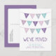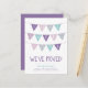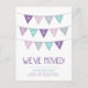 Création de carte postale d'annonce de déménagement moderne, mignonne et simple, avec une bannière de drapeaux multicolores adorable qui dit HOME SWEET HOME dans une police manuscrite, avec un espace pour ajouter votre nouvelle adresse en dessous. Ajoutez un message au verso ou laissez-le vierge pour écrire une note manuscrite. Cliquez sur le bouton PERSONNALISER pour personnaliser les polices, déplacer le texte et créer votre propre carte postale unique.