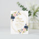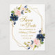 Moderne et élégant, floral aquarelle rose blush bleu, cadre géométrique or, carte postale d'annonce de fiançailles - Texte or