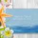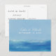 Cartes postales d'annonce de mariage sur le thème de l'océan avec des vagues à l'aquarelle et des polices simples et élégantes ainsi que des polices sans-serif modernes. Conçues pour correspondre à nos invitations de mariage à l'aquarelle Océan Élégant.