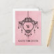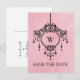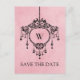 Élégante carte postale d'annonce de mariage à suspendre lustre vintage avec un lustre élégant suspendu sur un fond rose clair à l'aspect antique. L'élégance chic de ce design la rend parfaite pour annoncer votre mariage sophistiqué. Facile à personnaliser, ajoutez vos détails de mariage et initiale. Cliquez sur "Personnaliser" pour trouver plus d'options de personnalisation.
