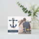 Cette carte postale à thème ancre/nautique est un excellent moyen d'impressionner vos invités avec votre propre photo des mariés - thème océan - Personnalisez le texte avec les noms des mariés, la date, le lieu. Illustration par ChanDraws Art & Design.